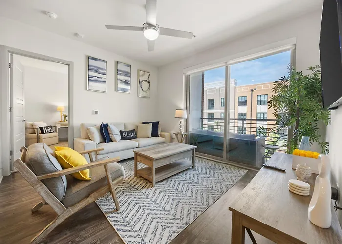 The spacious two-bedroom suites at the 2 Bedroom Heart of Frisco Gem boast stylish decor and ample natural light, providing a serene haven for relaxation. Each suite is equipped with contemporary amenities, including high-speed Wi-Fi, flat-screen televisions, and fully furnished living spaces that make you feel right at home. Guests can unwind on private balconies, offering stunning views of the surrounding Frisco skyline-an inviting sight that enhances every evening.